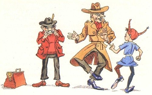 Bir dəfə Pepinin evinə oğrular girdilər. İki güclü kişi idi. Pepi elə bildi ki, onunla oynamağa gəliblər. Onları sevinclə qarşıladı və hədiyyələr də verdi. Tezliklə başa düşdü ki, onlar oğrudurlar. Hər ikisini tutub kəndirlə bir-birinə bağladı. Onları bir-birinə bağlamış bütün gecəni saxladı. Oğrular yalvarırdılar: “burax bizi, daha oğurlamayacağıq”. Pepi onlara inandı və evdən buraxdı. Oğrular bir də onun evinə gəlmədilər.