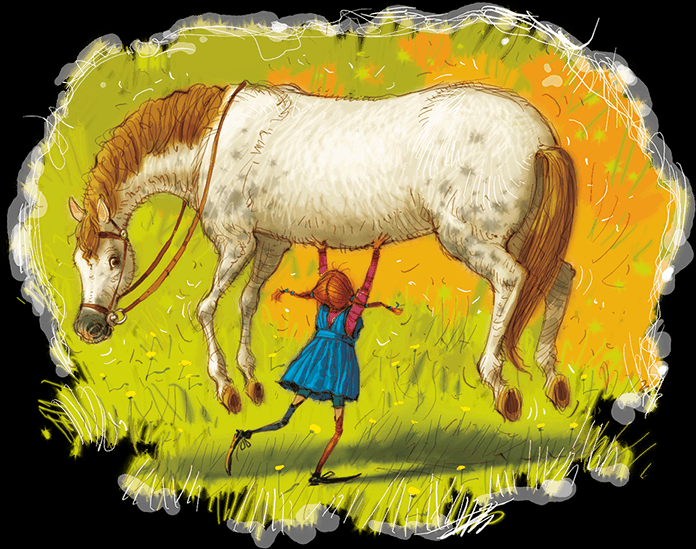Pepinin evində meymun və at var. Meymun Pepinin otağında yatır, onun adı Cənab Nelsondur. Pepi çox güclü qızdır. Bilirsinizmi, evdən atı necə çıxarır? Əlinə götürüb həyətdə oturdur.